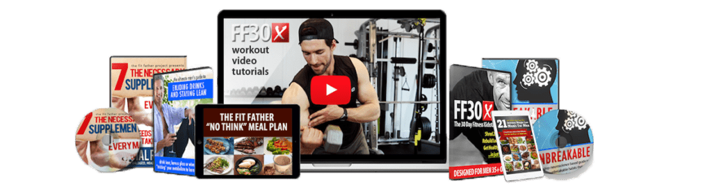 - The Fit Father “Fast-Action” Bonus Package – (Full Details below) – For a limited number of guys, I’m also including over $600 in powerful bonuses & resources covering key topics like: the best supplements for men over 40, the secrets of how to build iron discipline, how to enjoy alcohol while on FF30X, and much more. See below for what I’m including for the “fast action taking” guys.
